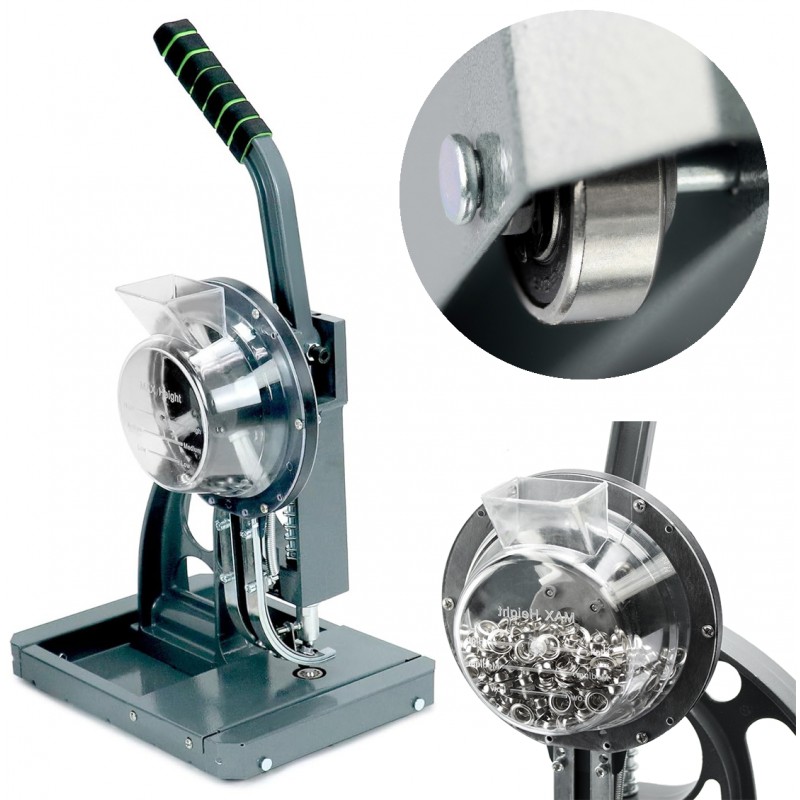 Samopodający podajnik na oczka – Oczka ładują się automatycznie, dzięki czemu nie trzeba ich każdorazowo ustawiać ręcznie. To oznacza płynność pracy i brak zbędnych przestojów.
